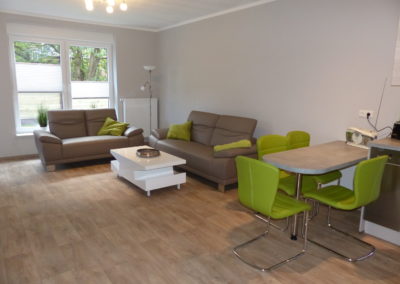 Sie wurde von uns mit Liebe zum Detail eingerichtet. Die Ferienwohnung ist komplett mit Aussenjalousien ausgestattet. Auf der Terrasse stehen Sitzmöbel für entspannte Stunden bereit. Die Terrasse ist nach Süden ausgerichtet – so lässt sich bereits das Frühstück in der Morgensonne genießen.